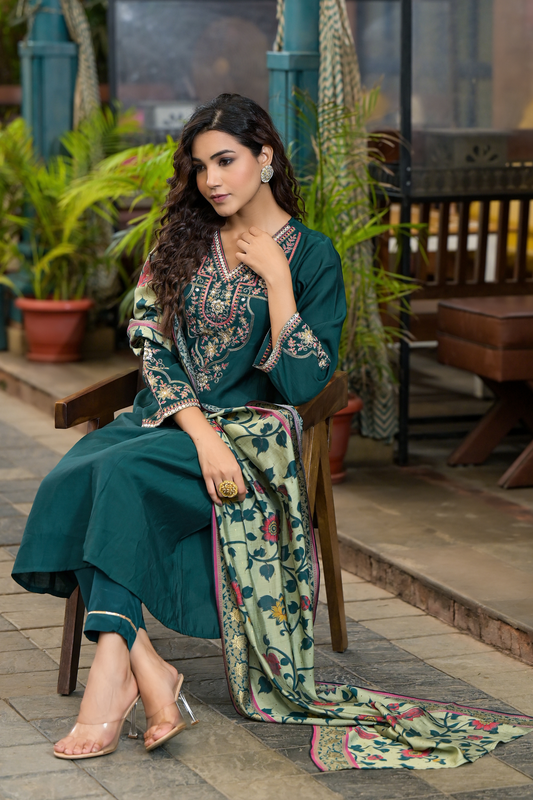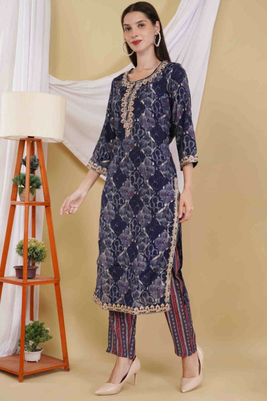 72% DiscountEmbroidered Navy Blue Kurta Set